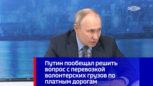 Путин пообещал решить вопрос с перевозкой волонтерских грузов по платным дорогам