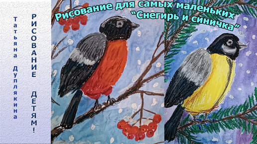 Как нарисовать птицу. Рисование для самых маленьких, рисуем масляной пастелью, акварелью птичку "Снегирь или синичка"
