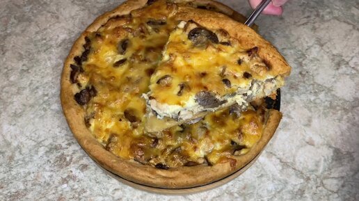 Киш (открытый французский пирог с начинкой) с курицей и грибами, в сливках.