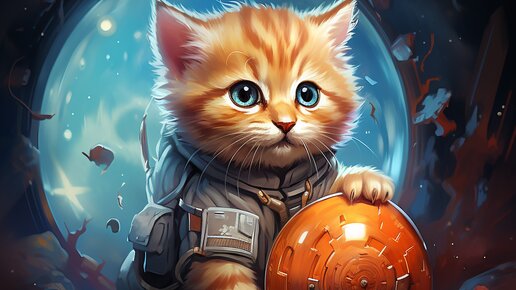 Фантазия ИИ "Приключение котенка в космосе" Видео по картинкам в нейросети с музыкой самой нейросети