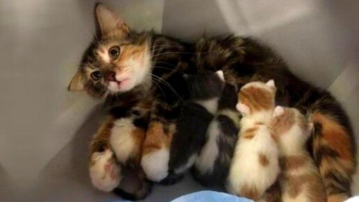 Кошка спит, она устала: домашние кошки с маленькими котятами в нелегких радостях материнства (реальные видео)