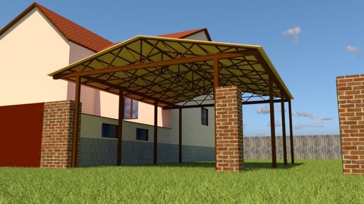 Проект навеса 7х5 с двускатной крышей из мягкой кровли