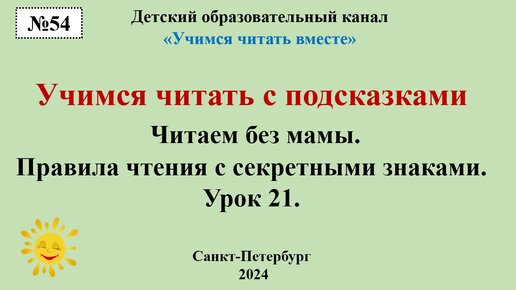 Учимся читать с подсказками. Читаем без мамы. Правила чтения с секретными знаками. Урок 21. Выпуск №54.