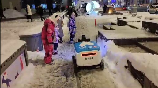 Умные роботы-доставщики Яндекса в центре Москвы переходят дорогу и продираются сквозь зевак
