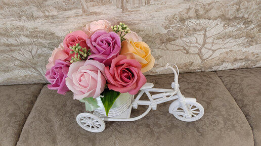 Кашпо "велосипед" с букетом мыльных роз своими руками, идеи уникальных подарков
