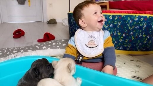 Малыш и щенки французского бульдога !