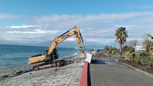 Имеретинка, конец января 2024. Начались активные работы по ремонту разрушенных штормами участков набережной. Доступ отдыхающих ограничен.