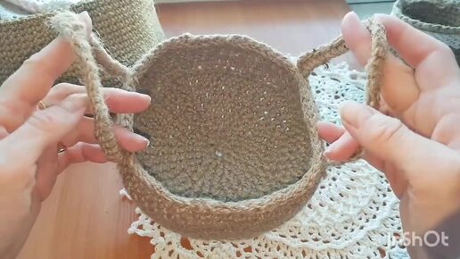Корзинка из джутового шпагата. Вяжем ручки корзинки