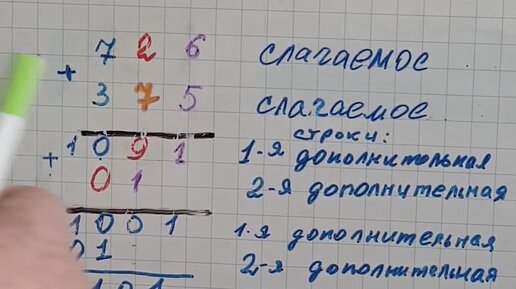 Сложение чисел. Метод дополнительных строк.