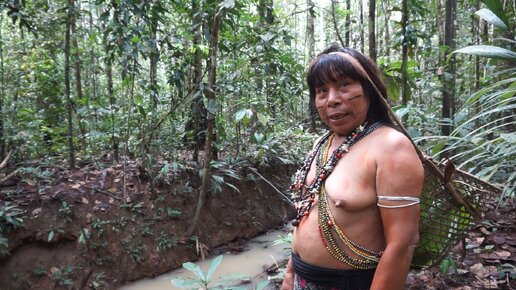 Тетя из джунглей! Это колоритную даму зовут Ышко, она принадлежит к племени мацэс из Амазонии. Послушайте, как необычно звучит ее язык!