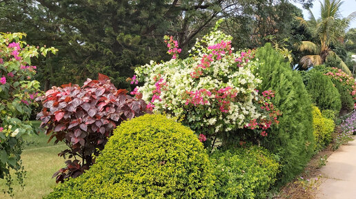 Благоухающий бордюр из цветущих кустов, чередующихся с туями