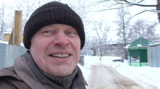 Я в городском парке. За забором кирпичная стена. Зима 2024 год