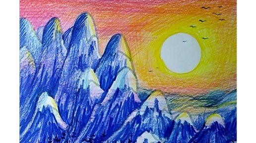 🏔️⛰️😊Как нарисовать скалистый горный пейзаж фломастерами и цветными карандашами.