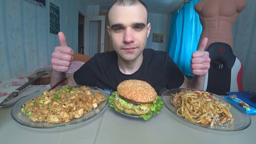 МУКБАНГ УДОН ( WOK ) С МОРЕПРОДУКТАМИ / ТЯХАН С КУРИЦЕЙ / ЧИЗБУРГЕР / EATING / Mukbang ASMR АСМР