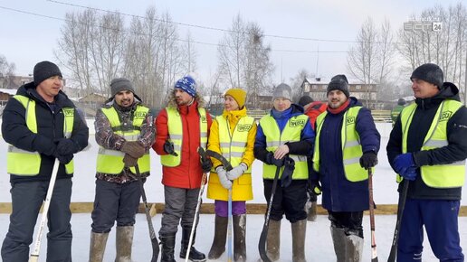 100 мужчин и одна девушка сыграли в хоккей в валенках в Вихоревке