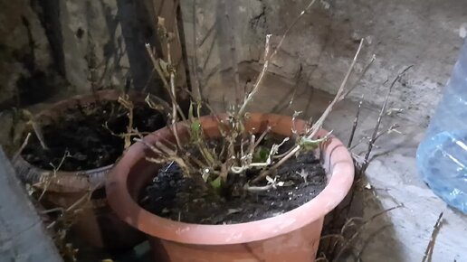 Проверяю состояние гортензий в погребе. О !!! Земля высохла,надо поливать !