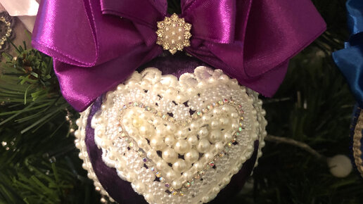 Создание новогодних украшений. Декор елочных шаров в бархате. Ручная работа.