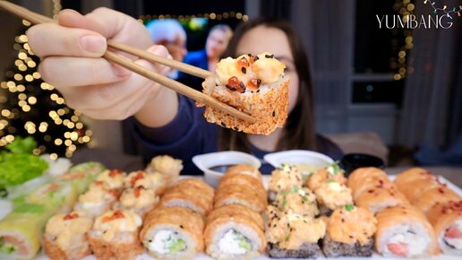 МУКБАНГ как исполнить мечту роллы с клубникой и карамелью суши mukbang sushi