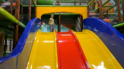 Ребенок бежит по большому лабиринту и залезает в трубу.