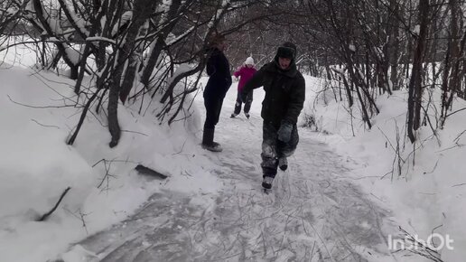 Дети сами организовали миникаток в огороде. Наши выходные. 28 января.