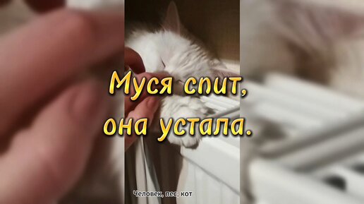 Кошка Муся спит, она устала. А батарея для этого самое подходящее место! Кошачий сон в теплом и уютном месте - это всегда повод для зависти.