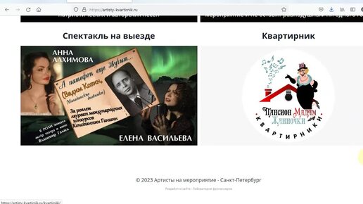 Создание сайта на заказ, видеообзор результата artisty-kvartirnik.ru