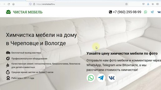 Создание сайта на заказ, видеообзор результата ximchistka35.ru