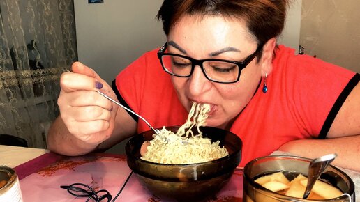 Давно БПшечки не Жрамвши😉/Пришла с работы,готовить Лень🤷♀️/А есть Сарделька и Бoмж-лапша😉/Мукбанг