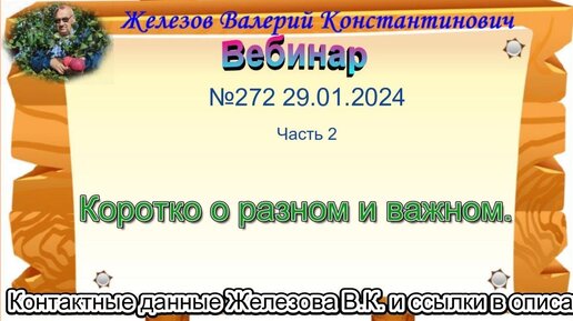 Железов Валерий. Вебинар 272. ч. 2. Коротко о разном и важном.