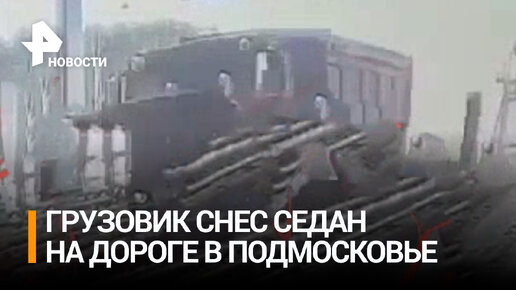 Грузовик снес седан на платном участке Минского шоссе в Подмосковье