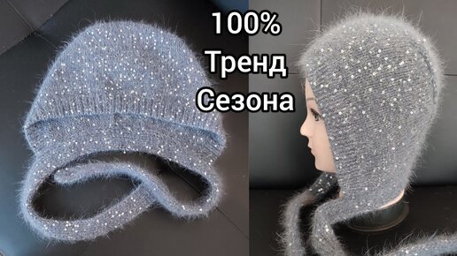 Модная популярная шапка без сложных расчетов и трудозатрат. Чепчик с завязками и пайетками, хит сезона