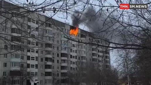 В Тюмени горит квартира на 9-м этаже жилого дома