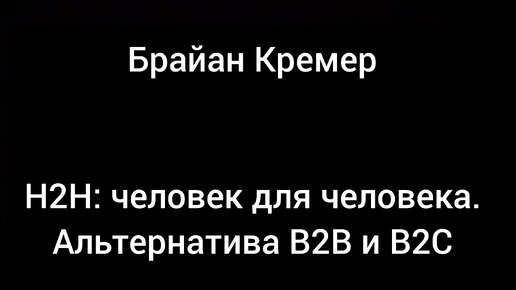 Брайан Кремер - "H2H человек для человека. Альтернатива B2B и B2C".