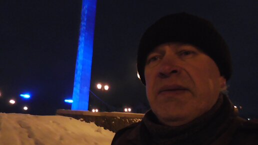 Я на набережной. Подсветка синего цвета - Стела. Зима 2024 год