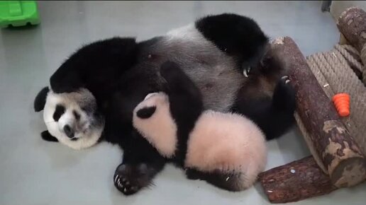 Панда Катюша из московского зоопарка мило спит со своей мамой