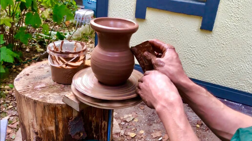 🍯 Самодельный ГОНЧАРНЫЙ КРУГ ИЗ ПНЯ и шуруповёрта Крутим крынку Волшебство керамики