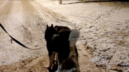 Встреча друзей - хаски Джекилл, Улыбака и Чернышка🐺🐾