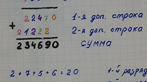Сложение столбиком методом дополнительных строк. Дополнение.