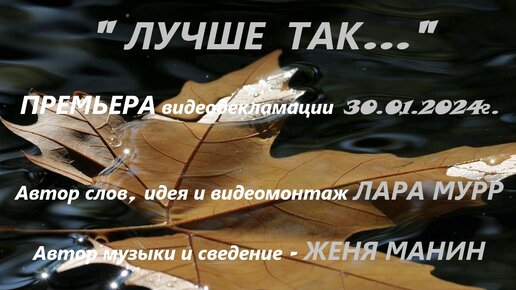 !!! ПРЕМЬЕРА видеоклипа "ЛУЧШЕ ТАК..." автор слов, идея, монтаж Лара Мурр, музыка Женя Манин