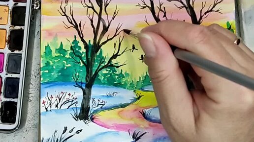 Рисую зиму без белой краски. I paint winter without white paint.