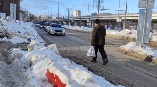 Пешеходы идут по дороге – на дублере Ново-Садовой строители перегородили единственный тротуар.