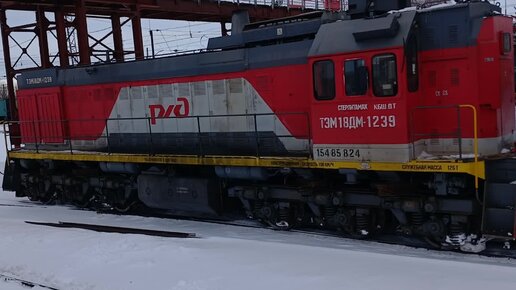 Тепловоз ТЭМ18ДМ-1239 выполняет маневры с крытыми вагонами на ст.Давлеканово.