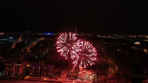 Аэросъёмка предновогоднего фейерверка у Особняка Путилова