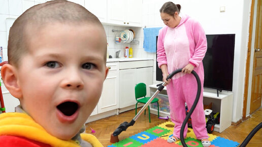 22 Ребенок убирается в квартире моет посуду стирает одежду и пылесосит