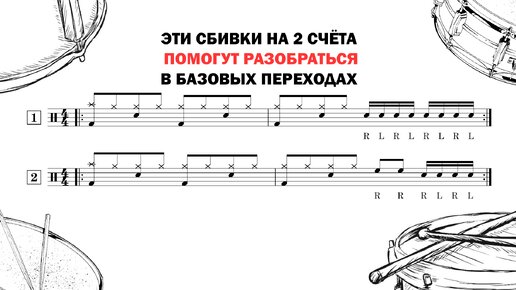 10 сбивок на 2 счета для начинающего барабанщика | брейки на барабанах
