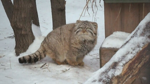 Манул Зеленогорск умывается после сна, а котята мамы Евы проверяют, нет ли где мышки.