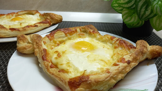 Ленивые хачапури по-аджарски. Из готового слоёного теста.