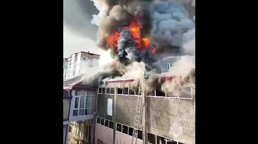 В Дагестане пожарные потушили горящую крышу универмага: видео