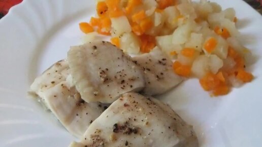 РЫБА В ПАРОВАРКЕ, с овощным гарниром.