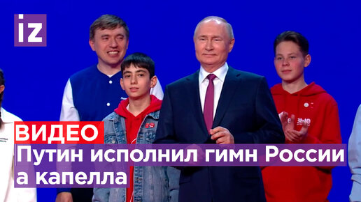 Владимир Путин а капелла исполняет гимн России во время съезда движения детей и молодежи «Движение Первых»